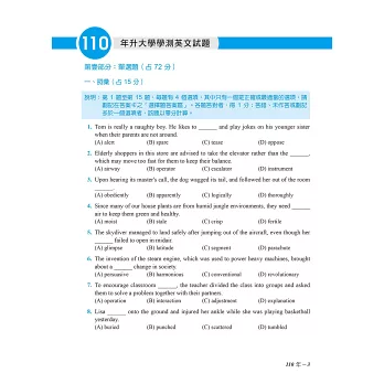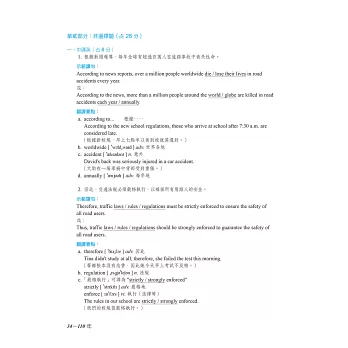 本書如果像坊間同類書一樣只附試題及譯文,則毫無參考價值可言。因此,我們一本常春藤出書的精神,採下列編輯方式: