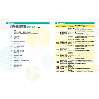 許多的研究都已證實,融入科學閱讀的教學有助於學生延伸課堂所學,讓學生能將課本內容所傳遞的科學概念與科學文章進行連結,使科學的學習產生意義。《科學少年》出版的《科學閱讀素養》不僅精選相關學科經典文章,更延請科學教師編寫相關的學習單,使其能直接運用在教學過程,提供教師進行科學閱讀教學時,方便且實用的教學資源。