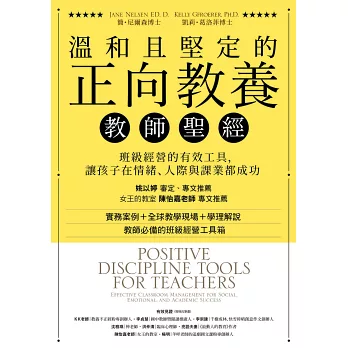 本書以阿德勒式的「溫和且堅定的正向教養」為基礎,介紹超過40種正向教養的工具,清楚又實用,具備長久的功效,讓老師可以全心專注在課業上,不必與學生衝突。