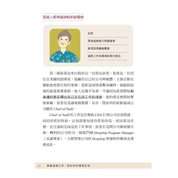 我也希望這本書除了以工具書的形式來幫助你之外,更希望能夠為你帶來一些靈感的啟發與未來趨勢的洞察,讓你能不只看到眼前的職涯,還能看見更長遠的人生規畫。願你我都能在不久後的將來邊工作邊生活,在喜歡的地方,用喜歡的方式,跟喜歡的人,做喜歡的事。