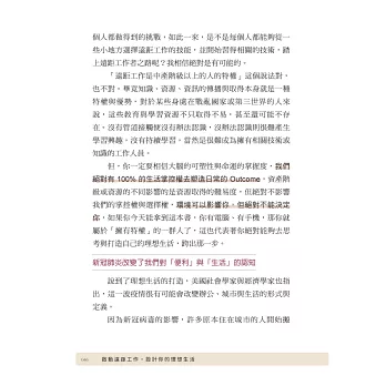 我希望這本書不僅讓你知道怎麼去「接軌」遠距工作之外,也可以讓你覺察到設計人生的重要性。當我們有越來越多的勞力工作被取代掉,你不用再做那麼多的繁瑣雜事,還能夠騰出更多的時間與空間時,你想要做什麼?你想要過上怎麼樣的生活?又或者,當你的價值不再透過工作來定義,你的理想生活樣態又會有怎樣的改變?