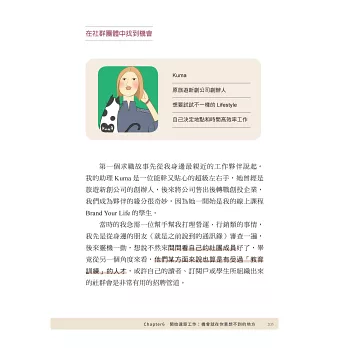 當過旅遊編輯的她,原先以為可以把旅行作為工作是很棒的事情,結果才發現因此工作跟生活無法區隔,反而沒有達到她真正想要的人生。為了拿回人生的主導權,她開始思索,有沒有工作是可以不進辦公室的?自己安排時間的?