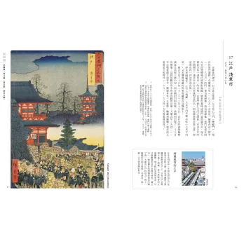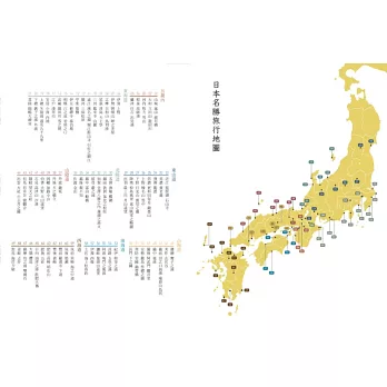 本書比照《六十余州名所圖會》目錄的分類,以「五畿七道」的順序收錄,「五畿內」5幅、「東海道」16幅(武藏國2幅)、「東山道」8幅、「北陸道」7幅、「山陰道」8幅、「山陽道」8幅、「南海道」6幅、「西海道」11幅,加上梅素亭玄魚設計的目錄1幅,共計70幅。