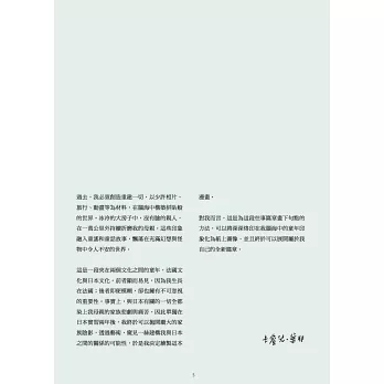 這本書是一封寫給童年的情書,充滿孩童的想像力。人們很難想像,即便不完全理解大人的問題,這些問題也會深植孩子們的心中。孩提時代,我逃進幻想世界躲避一切,由於不了解我的日本家族,也不知道母親的過去,我必須創造重建一切,以少許相片、旅行、動畫等為材料,在腦海中構築拼貼般的世界。冰冷的大房子中,沒有臉的親人,在一萬公里外持續折磨我的母親。這些印象融入童謠和童話故事,飄蕩在充滿幻想與怪物中令人不安的世界。