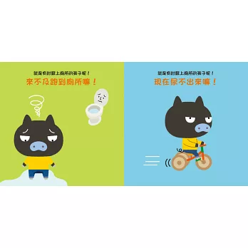 小孩成長的過程中,另一件讓爸媽們煩惱的事就是「上廁所」,孩子就像書中的小豬豬一樣,在穿尿布銜接穿內褲的時期,總是會因為各種理由而不願上廁所,讓爸媽們傷透腦筋。