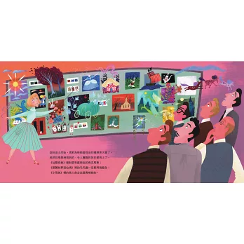 本書是由曾經在迪士尼擔任藝術家的布莉吉.巴拉傑進行插畫設計,全書繽紛鮮明的圖像,彷彿重現了瑪莉的藝術世界,完美描繪出瑪莉對生活的熱情與堅持。翻開本書,可以看見好多好多的色彩,檸檬黃、海藍色、淡紫色、赤褐色、灰綠色、櫻桃紅、翡翠綠……你喜歡哪一個?