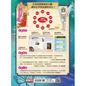 更加難得的是後面的〈深度神話之旅〉,對於神話的介紹,不但詳細且嚴謹,在搭配世界名畫、古代文物或是穿插著現今的神殿實景後,必定成為老師和家長們的好幫手,讓大人和孩子們討論時,可以從更多面向、全方位的探索,讓神話不只是神話,而是幫助孩子們跨出認識西方文明的一大步。