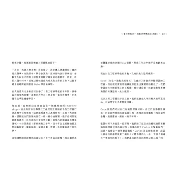 面對跨國、跨科系、跨文化、跨身分的各項進擊,她是如何從家有嫩嬰、每晚要起來餵奶兩次、上班要抽空擠奶的媽媽下定決心轉行成為軟體工程師?又是如何在有「文人剋星」之稱的矽谷中堅持著她的文藝夢?如何抱持勇氣撞擊舒適圈並且無悔地向前邁進?