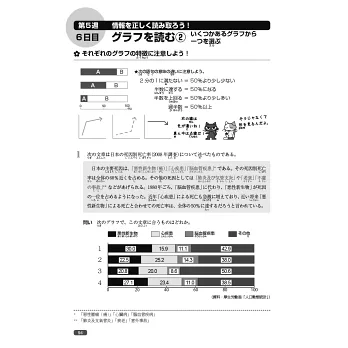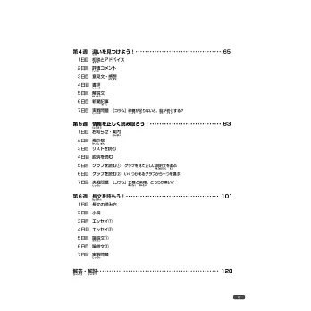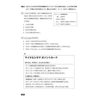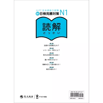 搭配日檢讀解出題形式,利用各類型文章,由淺入深,訓練掌握閱讀重點的技巧。六週共分為6個訓練主題:文章中哪些表現方式要特別注意、沒明講的時間∕人物∕事件為何、如何從文章裡找到答案、找出兩篇文章各自不同的看法、讀取正確資訊與長篇文章訓練。