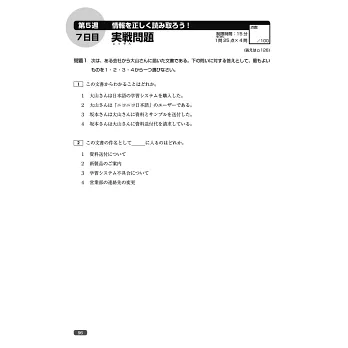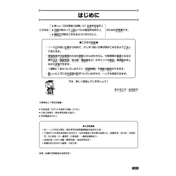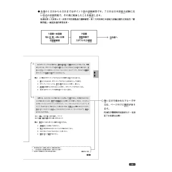 前6天的練習,是藉由不同類型的文章讓讀者即學即練。第7天的「實戰問題」,則以日檢形式出題,須限時完成,書末有解答與較難句型的解說。即使未能在規定時間內做完,透過多次的練習,亦能有效提升閱讀速度,同時熟悉日檢題型,增強信心。