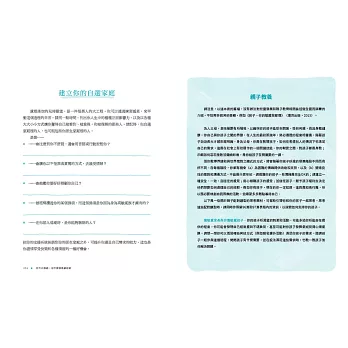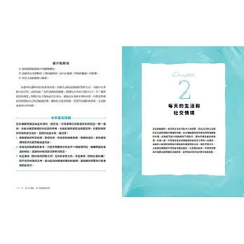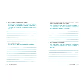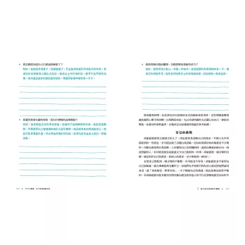 書中的小練習是依照生活的不同層面進行分章(人際、感情、健康、工作,和其他),十分方便,讓你可以想讀哪個主題就讀哪個主題。