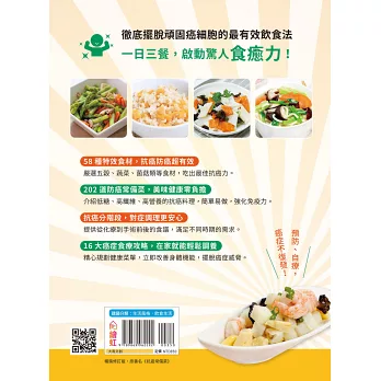 手術、放化療時期如何吃,復原才會快呢?治療後有消化不佳、咳嗽、水腫、嘔吐等副作用,該怎麼辦?本書提供各時期的具體飲食對策和療效食譜,有助於改善患者的身體不適,重拾生活品質! 此外,還針對大家易罹患的癌症,告訴該這樣吃,希望成為每個人安心抗癌防癌的最佳武器!