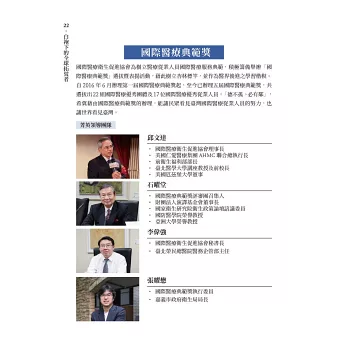 向各位推薦,本書側寫醫護人員基於人道關懷,在海外各地奉獻心力的實例,見證國際醫療典範世代的邁進與傳承,也讓台灣的愛心可以無遠弗屆地傳送到世界各地。——中華經濟研究院副院長 王健全