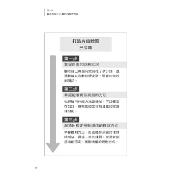 如果還沒,一點也不打緊,藉由作者提到第一個月的理財方式,和自己建立一個約定:「先記帳,但不用刻意省錢。」期待30天後的改變,跟隨橫山光昭的引導,一起打造有錢體質吧!