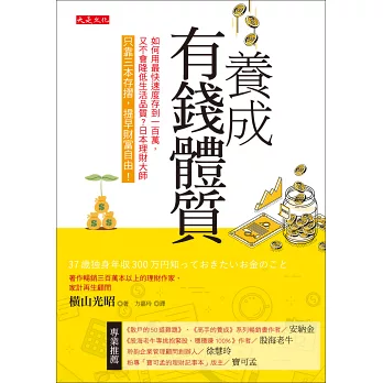 每個人都具備著有錢體質,只要建立正確的錢意識,認真面對自己的財務狀況,準確掌握收支、善用投資與儲蓄,作為我們抵禦財務衝擊的城牆。將這本書推薦給年輕人閱讀,幫自己從頭到腳好好調理有錢體質吧!