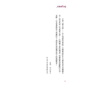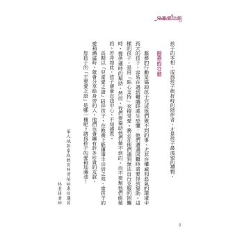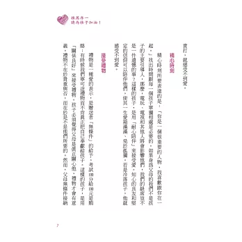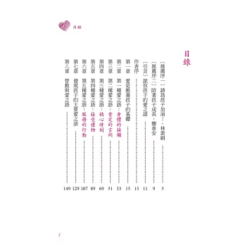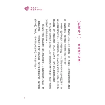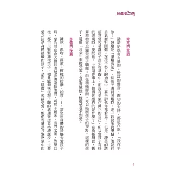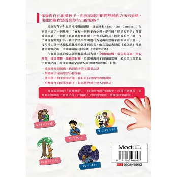 每個孩子都有一種主要的愛之語,是他們最能懂得父母之愛的方式。本書會告訴你如何辨識和表達孩子的主要愛之語,以及其他四種愛之語。說出孩子的愛之語,能使孩子知道你愛他們。孩子需要知道自己被愛,才能發展成為一個能給、能愛別人,而且負責任的成人。