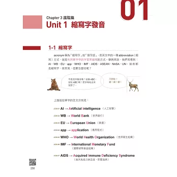 要想準確發音,自然發音及KK音標一個都不能少!透過學習自然發音,我們可以很直覺得念出所見的字句,但英文是受許多其他文化所影響的語言,因此常用的單字中有極高比例是屬於例外發音,這時KK音標就是一項很好用的工具!本書開章吳宜錚老師即詳細介紹兩種系統的規則,為你奠定良好的發音基礎。