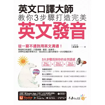 ※雖然我們努力做到完美,但也有可能因為手機的系統版本和「Youtor App」(內含VRP虛擬點讀筆)不相容導致無法安裝,在此必須和讀者說聲抱歉,若無法正常使用,若有此情形,需要麻煩讀者使用隨書附贈的CD。或與本公司聯繫,由專人為您服務。
