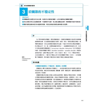涵蓋「冰凍肩」、「肩關節不穩定」、「肩胛骨排列及運動的異常」、「投球姿勢不良」、「肩關節活動度受限」等常見情況,