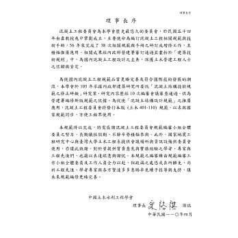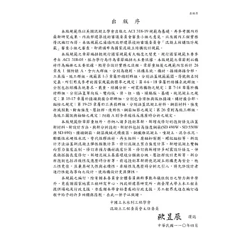 本版規範係以美國混凝土學會出版之ACI 318-19規範為基礎,再參考國內外最新研究成果、內政部建築技術審議委員會審查小組之意見,以及國內工程實務情況編訂而得。本版規範已通過內政部建築技術審議委員會「混凝土結構設計規範」審查小組之審查,即將頒布為國家混凝土結構設計規範。