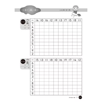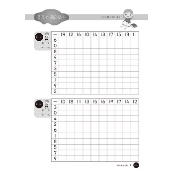 30天每天兩/一回合的反覆解題,假使孩子能在時間內完成,並且毫無錯誤的話,就已經具備小學數學基本計算的能力了。