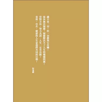 這本書是我個人生活態度、想法的集合,有回想過去,也有展望未來,過好現在。人生是線性的過程,從過去到現在再到未來。現在很快會成為過去,未來一轉眼就到了。人活著到底是為了什麼?人生的目的,需要什麼?要滿足什麼?如何過的快樂和自在?最終會留下什麼?什麼值得珍惜?這些人生的課題,可曾問過自已?