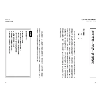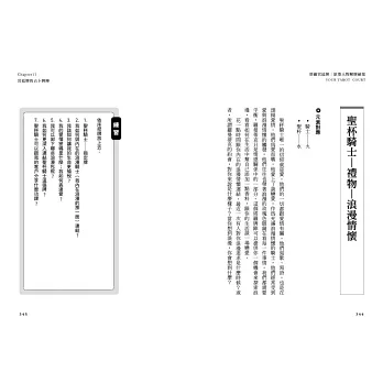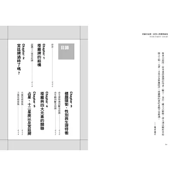 ◎穿插「宮廷人物愛情路線圖」、「塔羅賓果遊戲」、「療癒情傷的塔羅牌陣」等單元強化對宮廷人物的記憶。