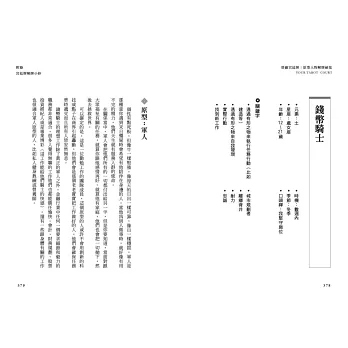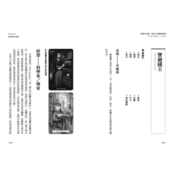 ◎探索每一張宮廷牌的「原型」,用嶄新手法透視這些謎般人物在新時代的社會形象!