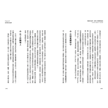 ◎我很喜歡作者透過原型意象解析塔羅的方式,讓每張牌都成為活生生的人物,或許是你身旁長不大的朋友,或是寵溺你的伴侶,甚至是你討厭的主管,他們個個擁有獨特的生命故事,誠摯邀請你翻開書,坐下來跟他們聊聊天。——諮商心理師&催眠師、「幽樹的療癒客棧」經營者/張義平(幽樹)