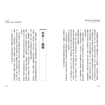 ◎宮廷牌是學塔羅時最困難上手的,在塔羅教學中,我會先讓學生瞭解大牌、小牌,最後再來理解宮廷牌。因為其他牌面都有很明顯的意思,但宮廷牌卻需要對塔羅牌的融會貫通。在占卜中,宮廷牌其實是最不可或缺的牌,也是我教學課程中,最被學生覺得困擾的幾張牌。然而竟然有人針對宮廷牌出書了!真的讓我太好奇了吧!
