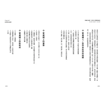 ◎專門探析塔羅牌中宮廷牌的著作終於問世了!宮廷牌藏有諸多奧秘,若能掌握宮廷牌透露的訊息,可迅速知曉人我、物我關係,其更可能諭示著權力關係、內在感受與身分認同。而本書詳盡探討侍者、騎士、皇后、國王之脈絡,深入淺出解析宮廷牌之人物、元素、占星以及對應時序,塔羅牌的愛好者絕不容錯過。——寓言盒子