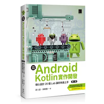 2017年Google官方指定Kotlin為開發Android應用程式的首選語言,其語法簡潔、直覺、開發效率高,因此掌握Kotlin程式語言成為重要的趨勢。本書是作者集結10年來教授Android課程的心得與精華,內容使用Android Studio與Kotlin程式語言進行開發,並精心設計20個章節,以深入淺出的方式及生活化的例子,帶領讀者從零開始、循序漸進地學習Android的基礎知識與運作原理,提供讀者最通盤性的認識,讓初學者也能輕鬆學會Android開發,並以實務的方式,培養紮實的實作能力,使讀者掌握Android開發的要領。
