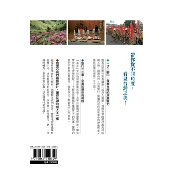 在享用當季食材大餐前,先體驗收成的辛苦;實際走訪歷史事件的發生地,才能有最深刻的感悟,依循書中的行程走一趟,不僅鍛鍊腳力,更能充實心靈,以身體力行愛台灣。