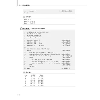*本書所有的語法、範例與程式都是使用ANSI/ISO C++的標準,同時也兼顧到Visual C++的相容性,因此本書所有範例程式皆使用「Orwell Dev-C++ 5.11 with GCC 4.9.2編譯器」與「Visual C++ 2019編譯器」編譯、連結與執行過。