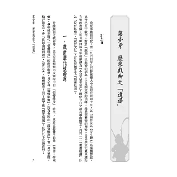 本人特別重視本書開頭之前提,要能有周全之導引;本書結束後,要有總體之審思與觀察。因之皆不惜篇幅分別以六章、八章各自獨立成編,而結撰為[導論編]與[結論編]。也因此證實了本人「貪多務得」的弊病,更呈現了本書「龐然大物」的庸俗。希望濃縮本《戲曲演進史》能有早日出版的一天,使之能「面目一新」。