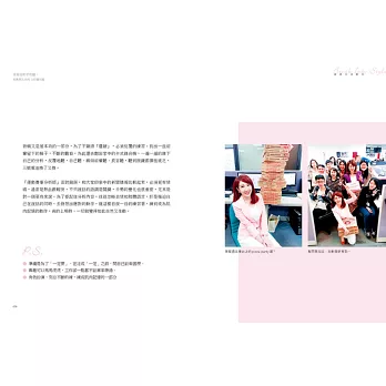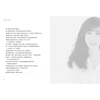 這位講求人生不按牌出牌的女孩不信這套,信奉「沒熱情比沒錢還痛苦」信念,全心投入一堆陌生的領域,不熟悉的事當探險,對別人保持好奇心,即使必須身兼多職(常常只有一份薪水),在每個歷練階段默默地養出黃金人脈,自助貴人助。