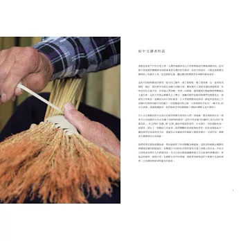 這本書中,我們調查全台各地以不同植物所製作出的掃帚,與拜訪這些日益年邁的製帚匠人,以材料分成「木」、「禾」、「艸」、「竹」四個單元,透過精彩的中日雙語文字和工藝紀錄影像,從植物取材、製作步驟到使用方式,呈現12把掃帚與綁掃帚的人的生命故事。
