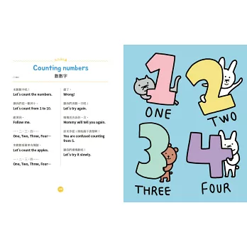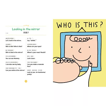 另外,本書錄製了英語母語人士生動發音的CD。媽媽可以先利用CD練習後,再說給孩子聽,記住!即使對英語發音沒有信心也沒有關係,最重要的是讓孩子直接聽到英語,當然,媽媽的發音會有所差異,但只要媽媽用英文與孩子說話,並同時讓孩子聽CD的發音,便可對孩子的英語學習有很大的幫助,因為對孩子的英語學習來說最重要的是媽媽的關心。