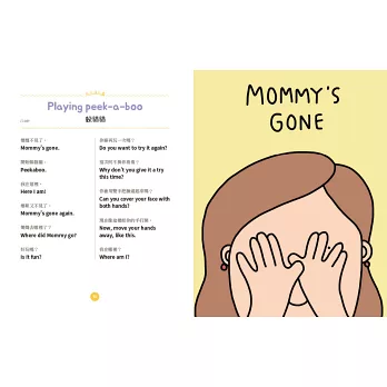本書是由在語言學習的第一階段,也就是媽媽跟孩子說的一般性句子構成,下個階段預計為媽媽與孩子分享的對話組成。