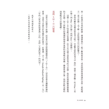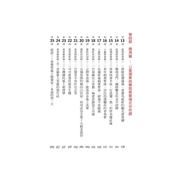 最後的應用篇,震宇以曾參與的實際案例,包括區域經營、小鎮聚落、餐飲民宿及產業創新等,說明如何應用書中提出的方法論,包括SMART創新五力以及商業模式金三角,探索未來發展的可能性。其中幾個案例我亦有機會實際參與,更感受到他的用心與投入。他不但是一個創作者,更是一個實踐者。