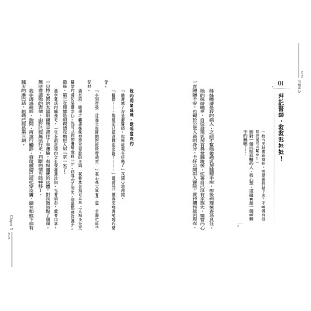 門診病房的啜泣、深夜護理站的求救聲、病房裡的患難夫妻、新婚丈夫的眼淚、懷孕太太病情延誤、經濟困難的婆婆……,病歷上的每一個名字,除了是渴求治療的患者,還是誰誰誰的家人,每一個人的背後各自牽動著許多人的幸福。