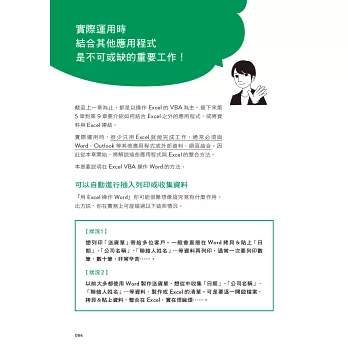 .不知道如何整合Word、Outlook等外部應用程式,也不曉得與CSV及網頁內容等外部資料的整合方法,使得VBA的運用範圍受限。