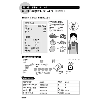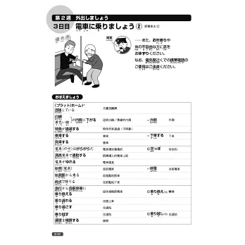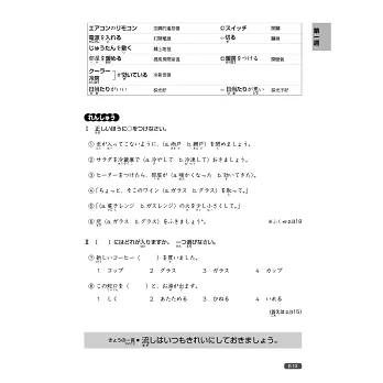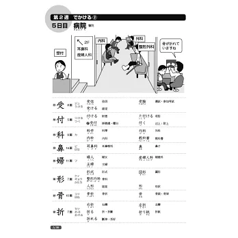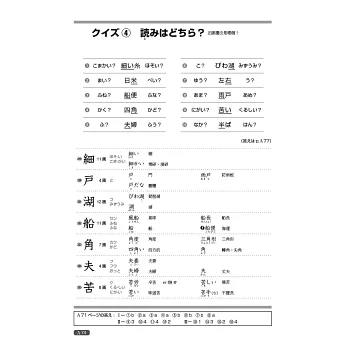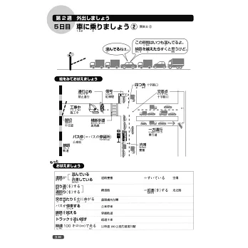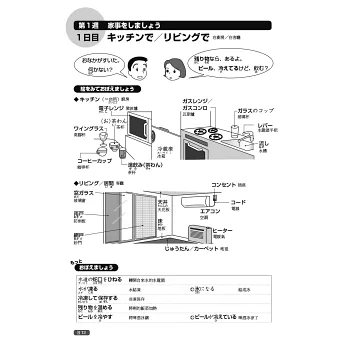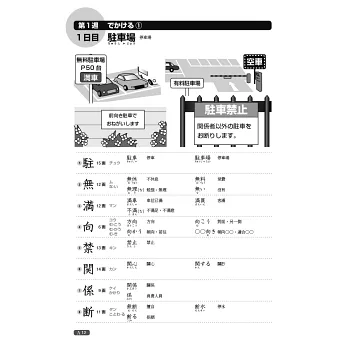 本書利用活潑的插圖,將生活中的各種情境或常見的告示牌、通知單、產品說明書等,巧妙連結單字。另有「クイズ」猜謎專欄,在趣味的題目裡,培養對漢字字形、意義、發音的熟悉度。