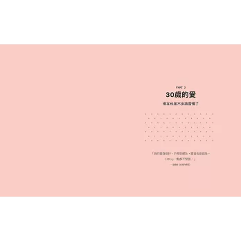 本書是剛踏入30歲關頭的作者透過工作、日常、愛情和關係的四個主題,