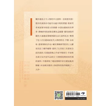 《越南漢喃作家辭典》由任職於越南社會科學翰林院所屬漢喃研究院(簡稱漢喃院)的鄭克孟前院長編纂,是為當今越南人物信息的權威來源。漢喃院是國際知名的學術機構,收藏了大量越南古籍和古文書,鄭克孟教授的《越南漢喃作家辭典》即以漢喃院厚實的一手史料為基礎,整理了791個越南前近代人物的姓名、字號、出身地、重要事蹟,以及傳世文獻清單,文獻中藏於漢喃院者還特別註記了具體的藏件編號,對有意瞭解該文獻的學者提供了極大的便利性。我們可以想見,根據一手史料進行近800個越南人物的信息整理,實為一件耗費時間心力的重大工程。本辭典經歷了長時間的編纂,於2002年在越南首度出版,迄今經歷三次修訂,在一手史料外亦吸納了越南學者長期以來的學術成就,中文版根據2019年最新增修的第四版譯成,可說是極為成熟的版本。原本越文版中的人物按越南語順序排列,不諳越語的讀者難以查閱使用;中文版在書後新增了中文排序的索引,極大地便利了中文讀者。前近代越南在東亞世界中極為活躍,書中所列人物不乏與中國、日本、韓國有互動者,讓本辭典成為不僅是越南研究,亦是東亞研究不可或缺的重要工具書。中譯本的出版,無疑是中文學界的大好消息。