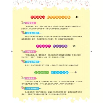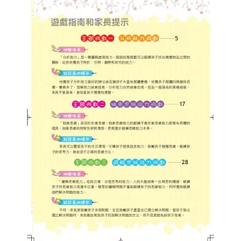 思維能力是學習能力的核心之一,人類一切偉大的發明創造都來自於強大的思維能力和創造能力。本套書採用主題式學習模式、科學分級階梯式訓練、通過反覆練習,由易到難的遊戲題目,來提升孩子的思維能力,從而提高孩子的學習效率和創造能力。