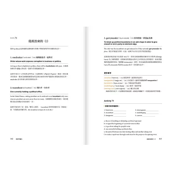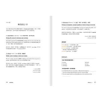 想用英文表達各種程度的「困惑」,除了在confused前面加上very之外,你還可以使用更精準的字!跟中文一樣,英文也有表達不同「困惑程度」的單字:perplexed→baffled→dumbfounded。英文想達到母語程度用字,collocation(詞語搭配)是必不可少的一環,本書透過情境例句跟詞語搭配,讓你知道,要表達「電視名嘴」,使用pundit用比expert更道地,而「精神領袖」可不是用什麼leader,而是說spiritual guru。