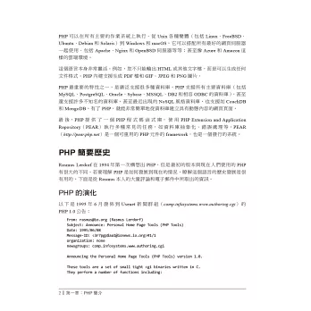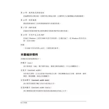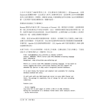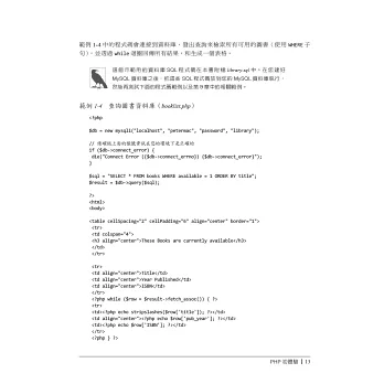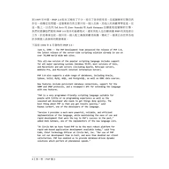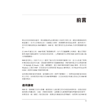 如果您已熟悉HTML,本書作者群所提供的設計技巧和開發實務建議,將會幫助您成為頂尖的PHP程式設計師。