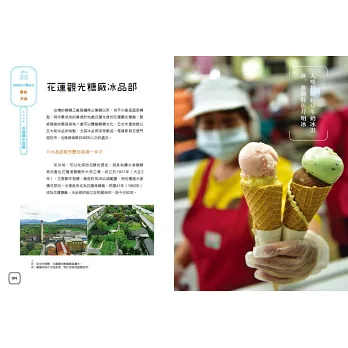 糖廠冰品多集中在中南部與東部,本書特地到幾處知名糖廠取材,包括善化、虎尾、屏東、旗山以及東部的光復等,帶大家看看糖廠冰的製作過程,吃吃各家的招牌冰品,認識台糖除了甜甜的製糖歷史以外,也體驗台糖冰的涼涼風情。