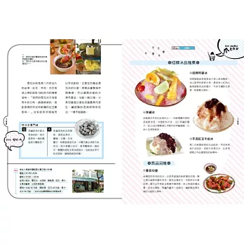 ◎吃冰也看門道:以QA穿插,讓讀者在吃冰消暑之際,更能深入了解不同台灣冰的典故、名稱、吃法等知識。